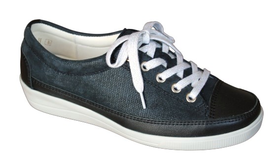 Veterschoen van de “Pure Welness” lijn model Locarno op een H+ wijdte met uitneembaar voetbed en leer gevoerd in zwart combi € 190,00