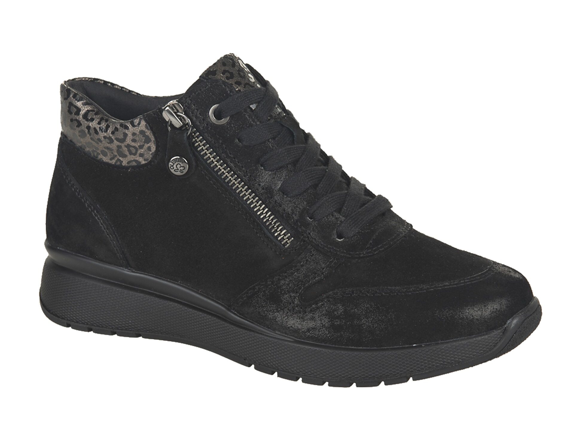 F003 Fidelio half hoog veterbootje zwart combi Half hoge veterschoen met uitneembaar voetbed op een “H wijdte” in zwart combi € 190,00. Het voorblad is voorzien van een zeer comfortabele “multistretch” Prijs: €190,00