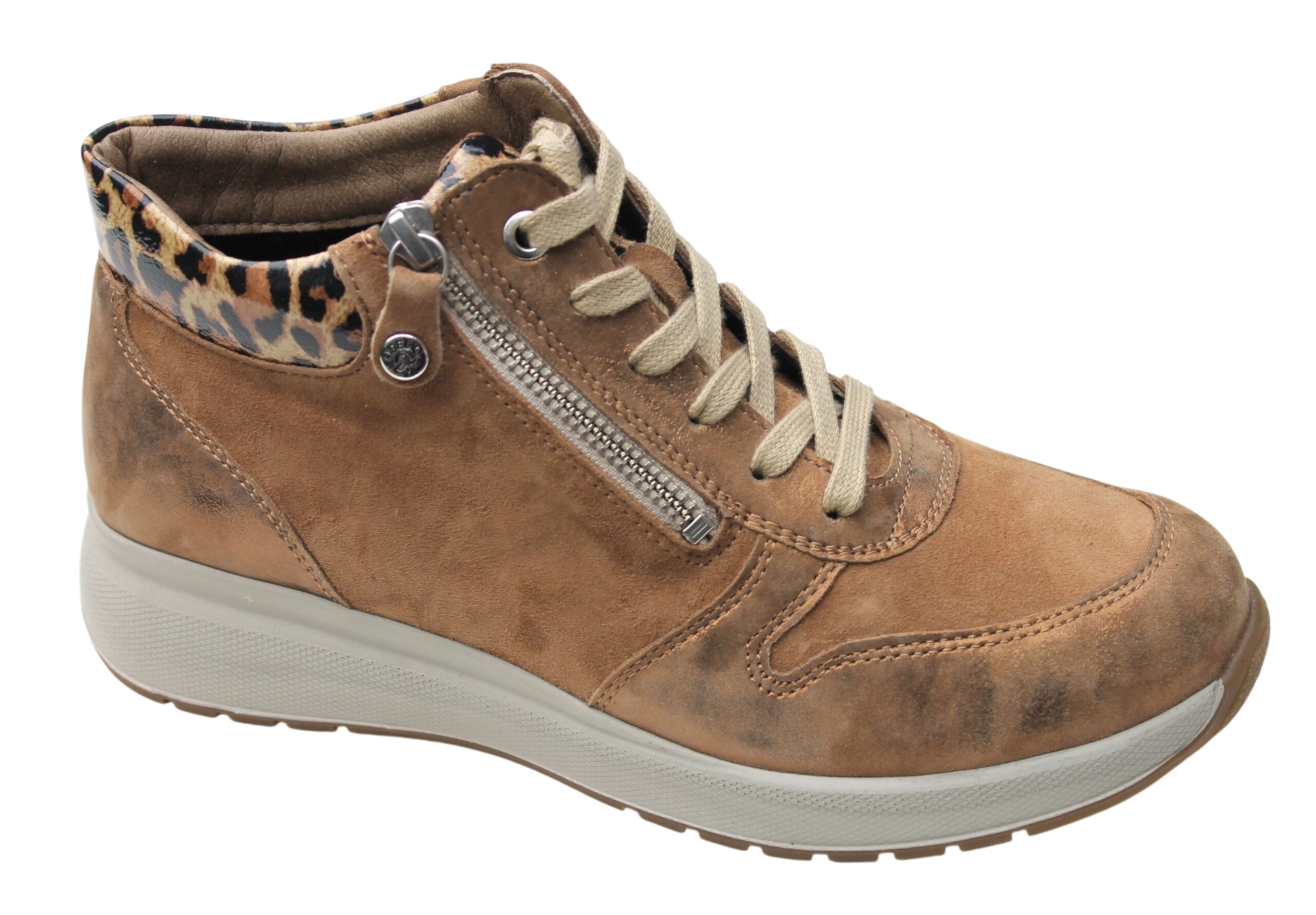 F204 Fidelio half hoog veterbootje met ritsje zandbeige combi