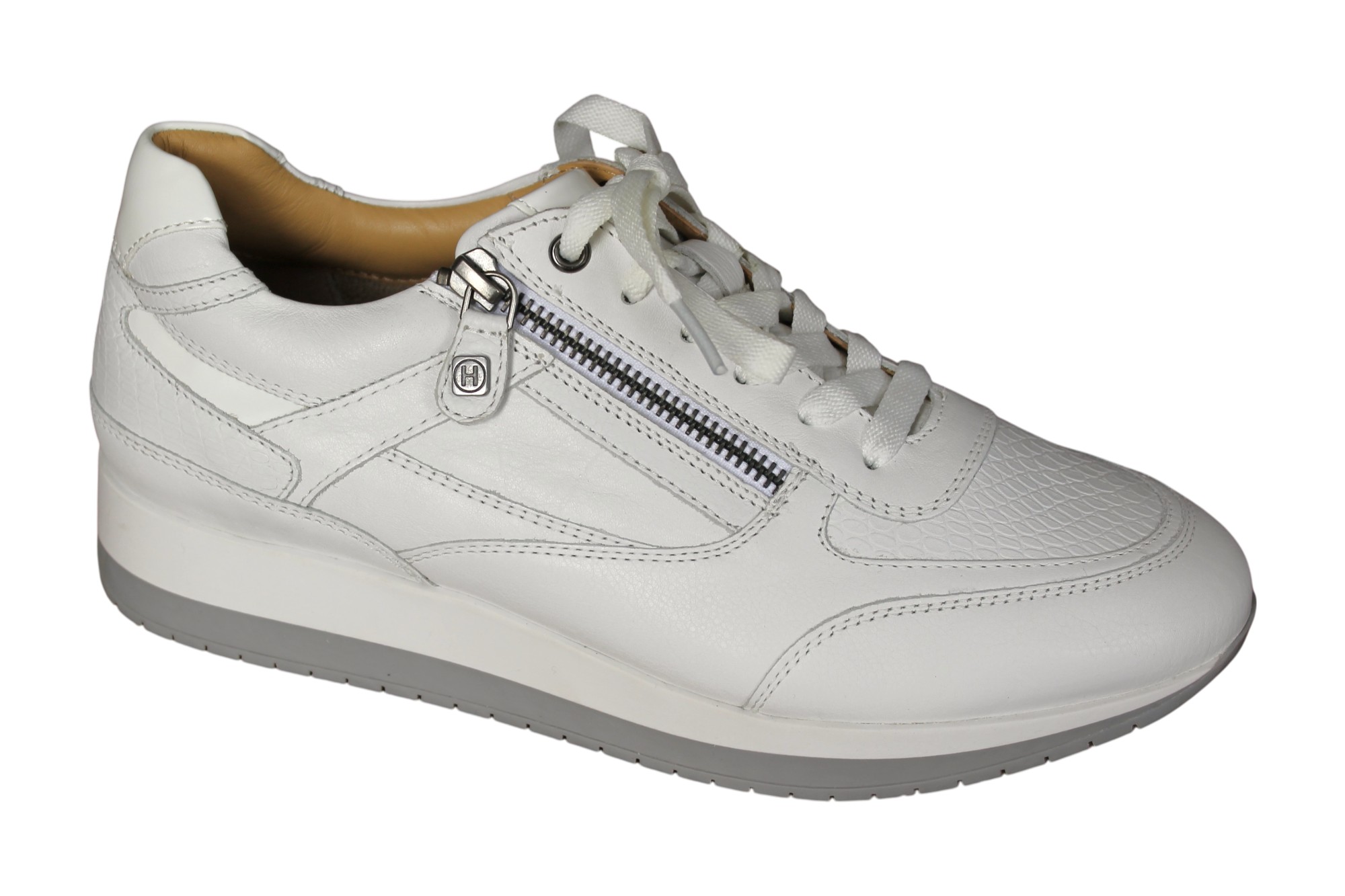 Sneaker met ritsje en uitneembaar voetbed in wit leer € 149,95
