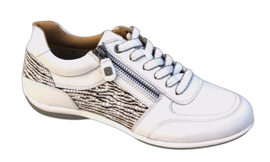 H017 Helioform veterschoen wit leer met zwart/beige fantasieprint Veterschoen met ritsje en uitneembaar voetbed in wit leer met zwart/beige fantasieprint € 129,95 Prijs: €129,95