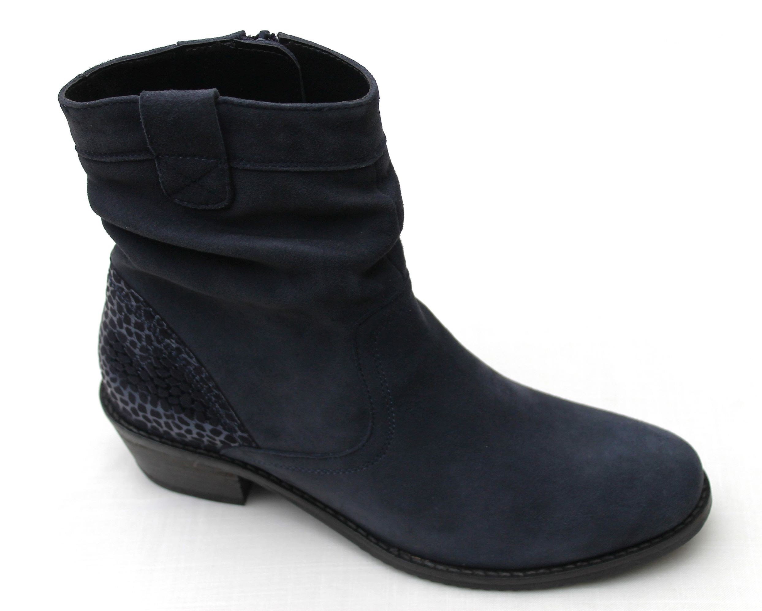 Kort laarsje met uitneembaar voetbed op een “H wijdte” in blauw gevet nubuck € 159,95