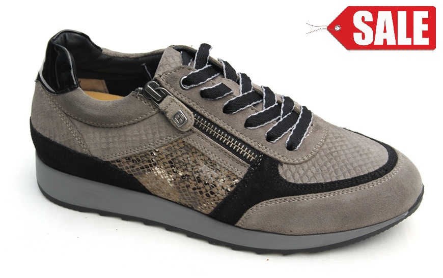 Sneaker met ritsje en uitneembaar voetbed op een H wijdte in grijs met zwart suède Nu van € 129,95 voor € 99,00