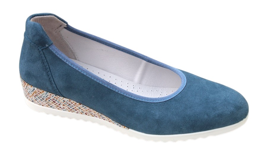 OVD011 Sleehak ballerina jeansblauw suède sleehak ballerina met uitneembaar voetbed in jeansblauw suède € 89,95 Prijs: €89,95
