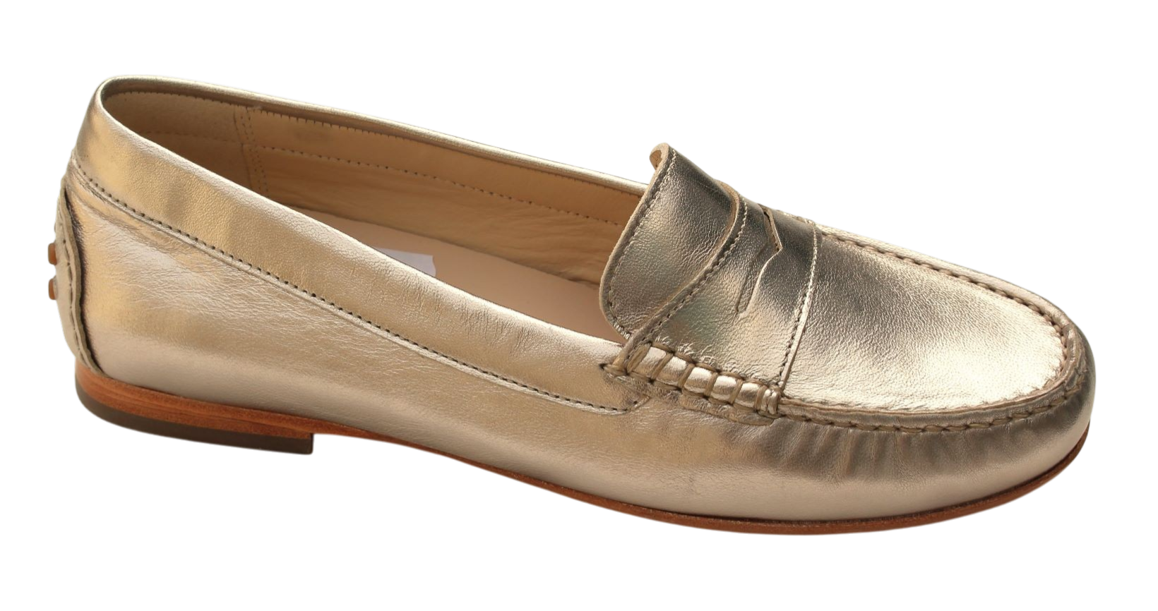 Mocassin model “Borinka – 700” met uitneembaar voetbed in lichtgoud metallic € 139,95