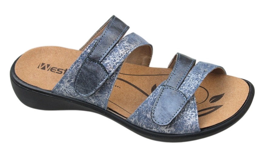 WS004 Westland Ibiza 81 verstelbare klittenband slipper jeansblauw metallic combi